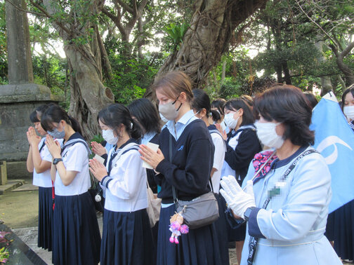 平和の礎では、沖縄戦で亡くなられた方の名前を見ながらバスガイドさんのお話を伺い、平和の尊さを学びました。