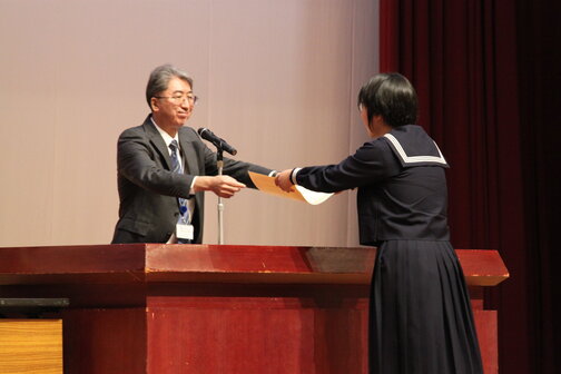 校長からは、「継続は力なり」という言葉をもとに、努力を積み重ねることの大切さについてお話がありました。「成功の裏側には、反復や修正、数えきれない試行錯誤があり、思うような結果が出なかった経験も決して無駄ではなく、次にどう活かすかを考え続けることが大切である。うまくいったことも、そうでなかったことも結果で終わらせず、その経験と向き合い、次の行動につなげることが大きな成長につながる」との力強いメッセージが生徒たちに送られました。