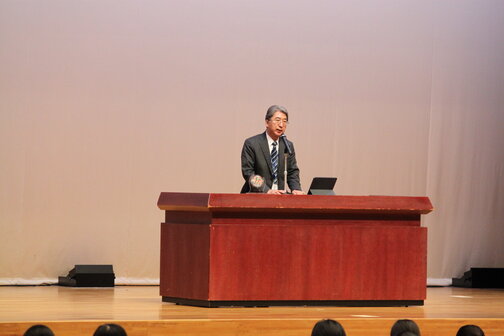 校長からは、「学びは教室の中だけにとどまらない」という話がありました。世界にも目を向け、実際に試しながら考え、問いを立てて学び続けることの大切さや、自分自身で道を切り拓いていく「学び続ける学習者」であってほしいという思いが伝えられました。