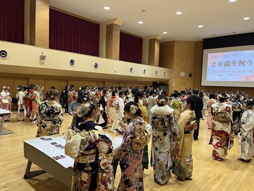 1月12日(祝・月)、本校の多目的ホールに令和5年度の卒業生約150名が集まり、「20歳を祝う会」を開催しました。