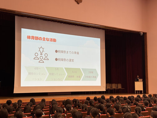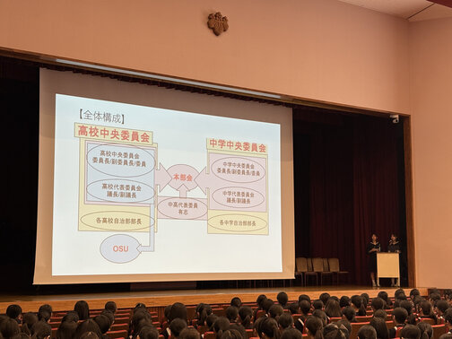 始業式の後は、生徒会や、学外のボランティア活動の紹介がありました。