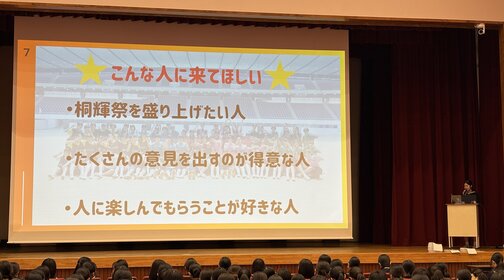 上級生が新入生に向けて、生徒会(自治部)と部活動の紹介を行いました。