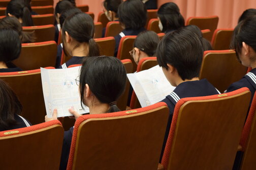 中学1年生の集会では、これからの学校生活に向けたアドバイスが伝えられました!