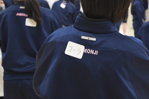 背中に貼られた言葉をヒントに、“仲間”を見つけるコミュニケーションゲームを行いました!