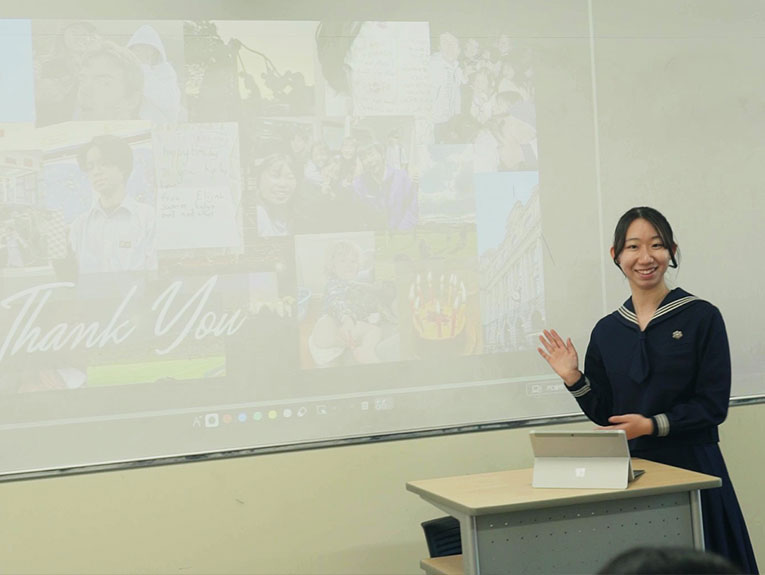 I・M留学です。コース全員が参加する「British Hills」という英国文化を体験できる施設での語学研修をきっかけに、海外に出てみたいという思いが強くなりました。そこで、自分でエージェントを使ってニュージーランドに3カ月間の語学留学へ。初めての留学で、現地の高校生と一緒に、英語で授業を受けるのは本当に大変でした。毎日、英語の学習アプリを利用して何度も復習するなど、努力を重ねました。3年生では「トビタテ!留学JAPAN 新・日本代表プログラム※」という文部科学省のプログラムにも参加。ニューヨークで現地のカウンセリング技術に触れるなど、納得のいく形で3年間の探究活動を終えることができたと思います。