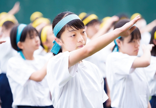 学校に着いたら体操服に着替えて伝統の自彊術体操を全員で行います。創立以来続く自彊術体操は「自彊不息(じきょうやまず):常に自分を鍛え続ける」という理念から生まれたものです。身体全体の調子を整え、健康づくりを基本とする考えに基づいてつくられた体操。心身のリフレッシュはもちろん、コツコツと続けることの大切さを学びます。